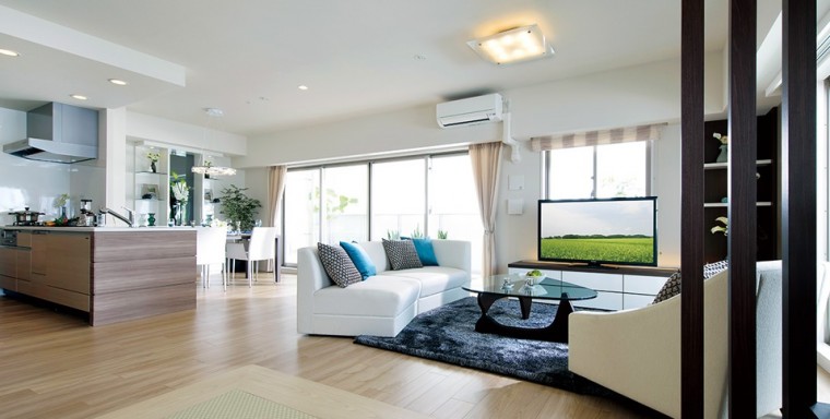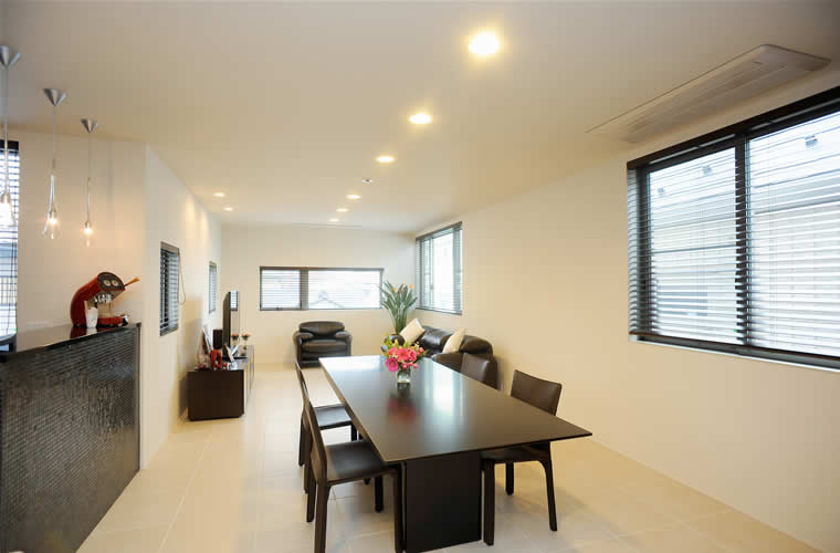 横長リビングでは、キッチンの前に横長のリビングが広がり、