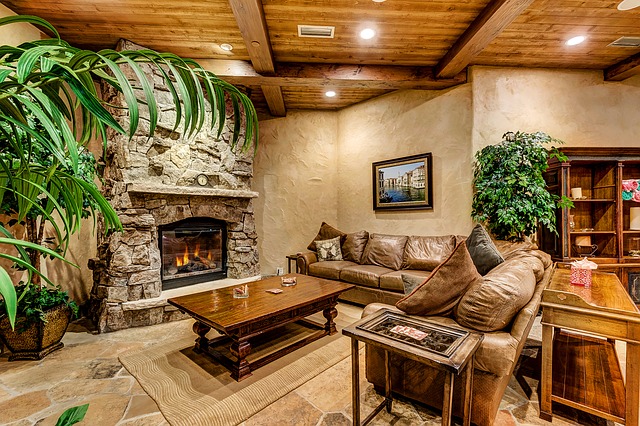 海外のインテリアでよく見かける大きな暖炉にも目が行くと思います。これもフォーカルポイントです。