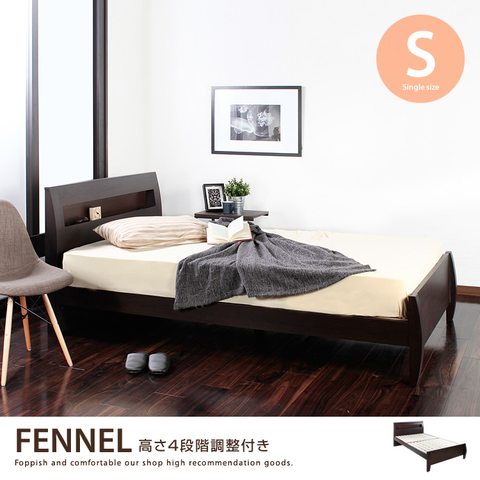【シングル】 FENNEL 高さ4段階調整付き ベッド すのこベッド 宮棚付 コンセント付