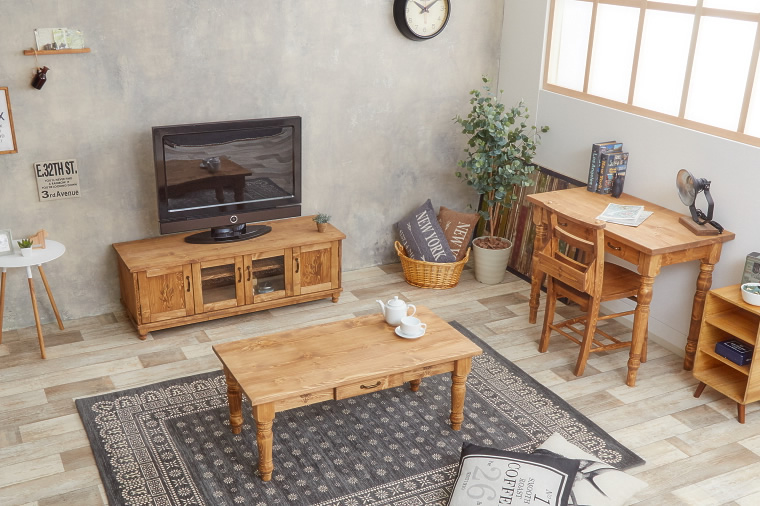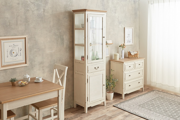 シリーズの家具で統一すれば、お部屋をフレンチカントリーな雰囲気に。また、ナチュラルテイストにも