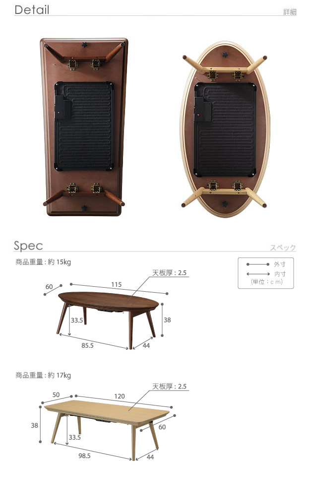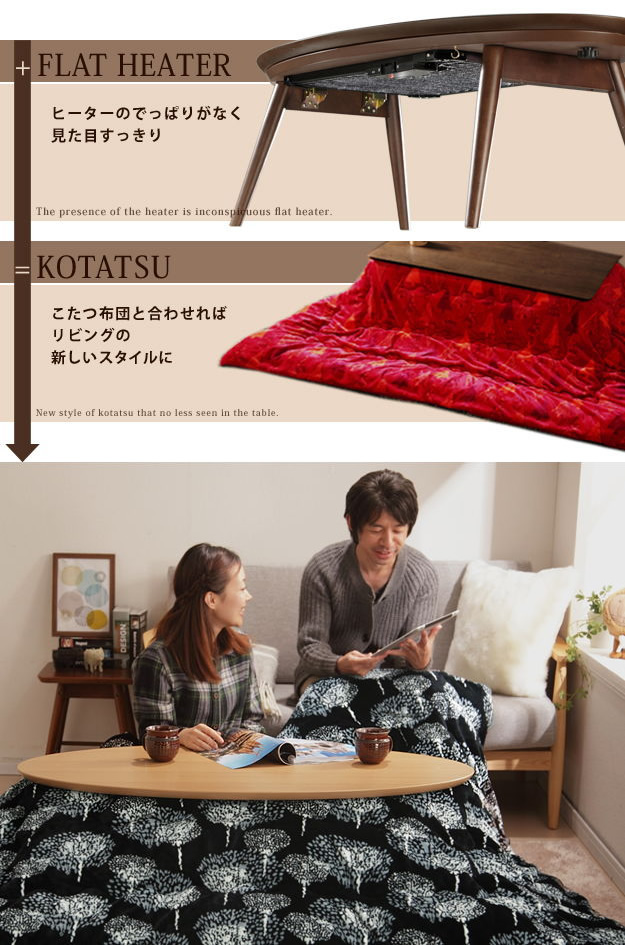 • 【楕円形:90cm×50cm】Carmina こたつテーブル
