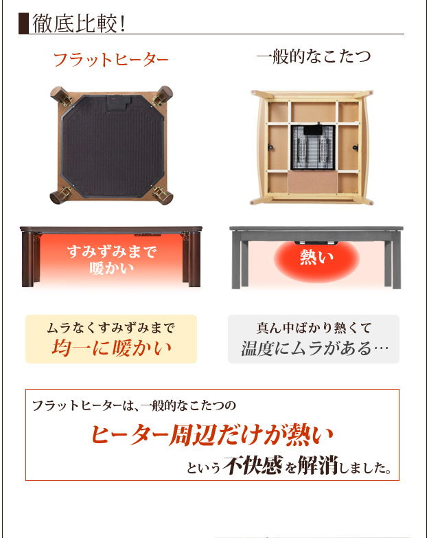天然木を使用したシンプルなデザインのこたつテーブル。シンプルなデザインなので、どのような雰囲気のお部屋にも合わせやすくなっております!ヒーターには、フラットヒーターを搭載しているので足元が広々としていて、脚を伸ばして快適に使っていただけます。使っていない時は、折りたたんでコンパクトに収納出来ます♪飽きのこないシンプルなデザインなので、ずっと長く使っていただけます。