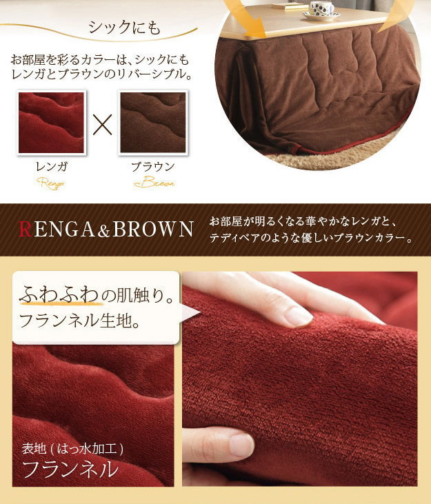 【完成品】【60cm×60cm】リバーシブルで使えて撥水加工が施されたこたつ布団/色・タイプ:レンガ・ブラウン&ベージュ・グレー