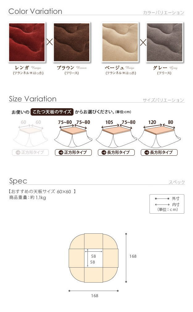 | 商品名 | Molf 正方形こたつ布団 60×60cm |