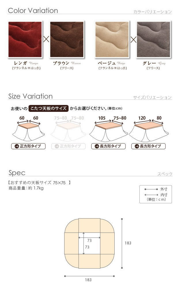 | 商品名 | Molf 正方形こたつ布団 75×75cm |