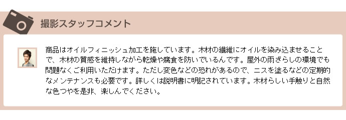 滑らかな触り心地の無垢材なのでちょっと休む時など、ゆったりくつろぐことが出来ます。 ガーデンで本を読みながらゆったりとするといった時にも使えます。