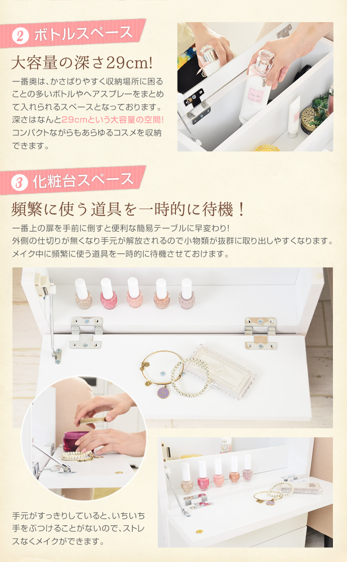 【幅71cm】Emu ミラー&収納付きドレッサーデスク