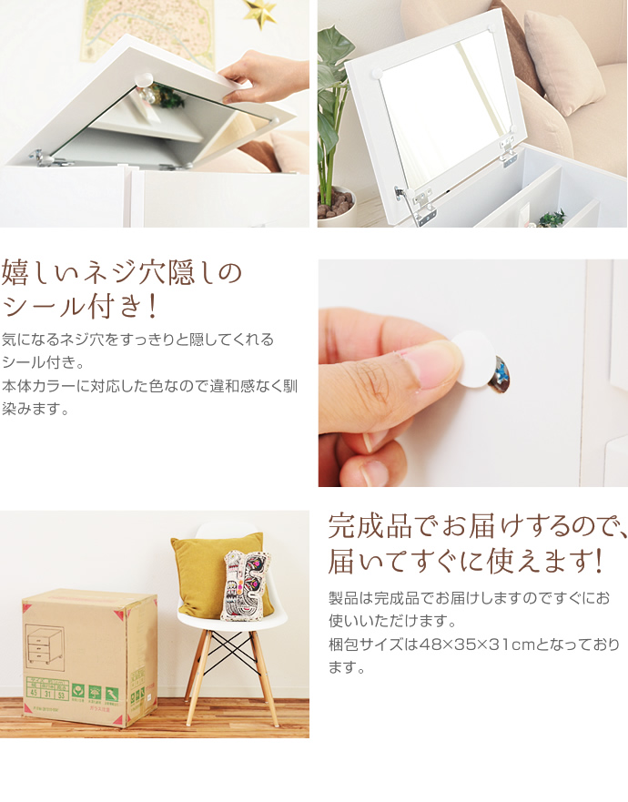 【完成品】【完成品】シンプルなデザインがオシャレなドレッサー/色・タイプ:ホワイト