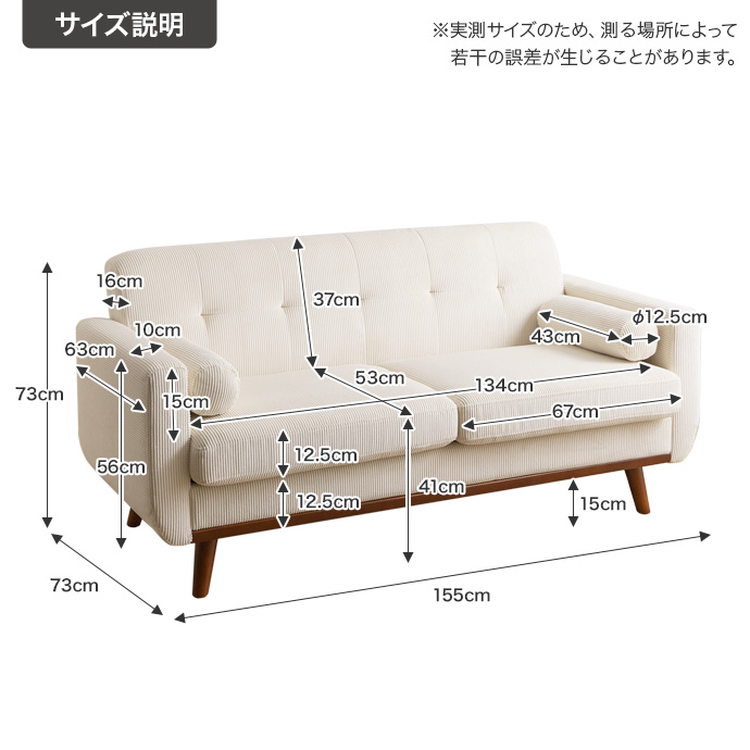 | 商品名 | 【幅155cm】2.5人掛けソファ |