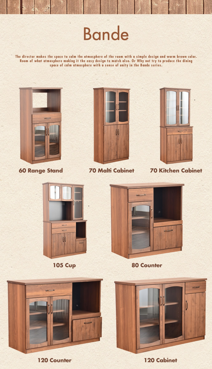暖かみのあるブラウンカラーで、お部屋を落ち着いた空間に演出してくれるバックパネル。シンプルなデザインとどのような雰囲気のお部屋にも馴染みやすいデザインが人気のBandeシリーズです!キッチン収納を更に便利で使い勝手を良くしてくれるバックパネルです。【80 Counter】を更に使いやすくしてみてはいかがでしょうか。