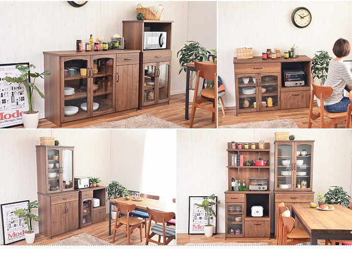 収納するものに合わせて棚板の高さを調節出来るので、高さのある物も収納していただけます!棚板の高さは 22段階で調節が可能となっております。食器や鍋・フライパンなどの調理器具を収納するだけでなく、雑貨類や小物類を飾りながら収納すれば、オシャレなキッチン収納を演出出来ます。