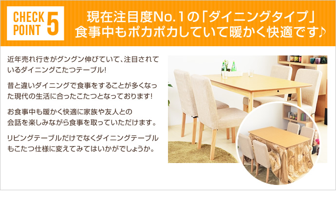 こちらのこたつ布団は長方形タイプとなっているので、ゆったりとご使用いただけます。身体全体に布団をかけて いただけるサイズなので、寒い冬の時期に身体を冷やすことがありません!また来客時も一人一人ゆったりと、 窮屈感なくご使用いただけます♪
