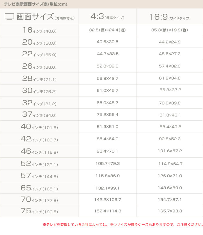 備考 ※テレビのサイズによっては、最大インチのテレビを置けないこともございますので、サイズをご確認の上ご購入下さい。