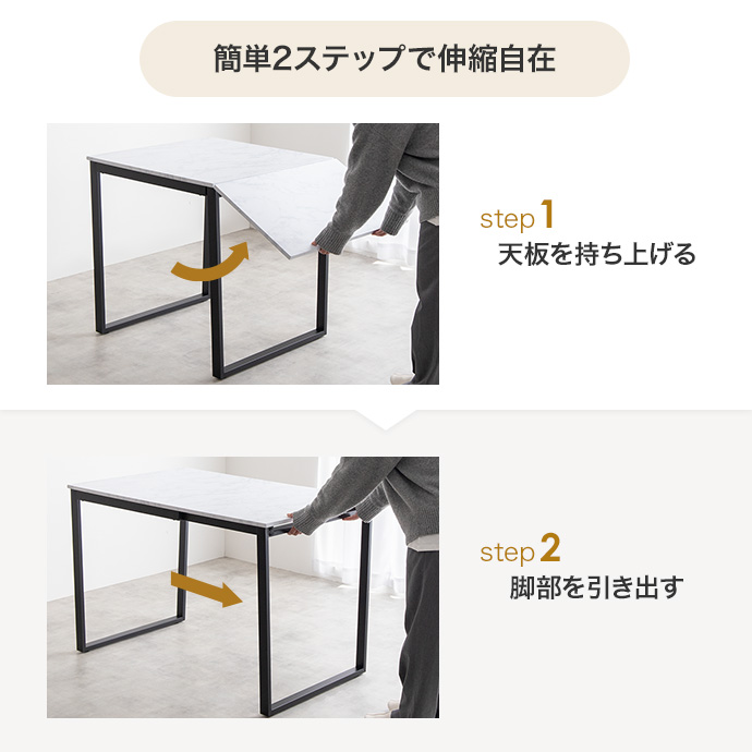 食事でのご使用だけでなく、ティータイムや趣味の時間、ご友人とののんびりタイムにも大活躍。また、天板を広げればPCや資料を置くのにも十分なスペースが確保できるため、作業用デスクとしてもおすすめです。生活の中のあらゆるシーンがこれ1台で確保いただけます。