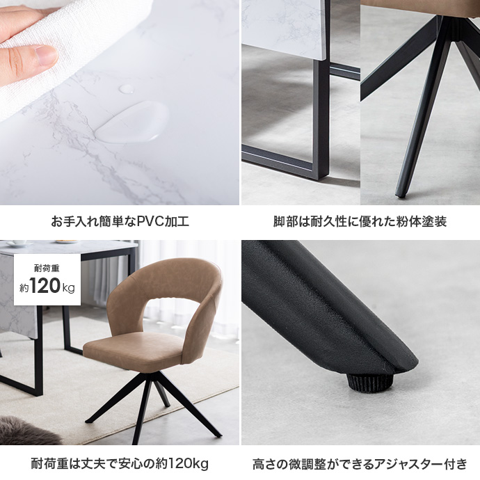 | 材質 | 【テーブル】MDF(PVC貼り) 【チェア】PU、ウレタンフォーム、合板 |