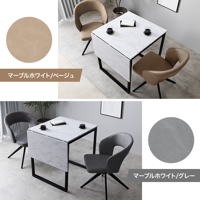 【3点セット】伸縮式ダイニングテーブル+回転チェア2脚(PUレザー)
