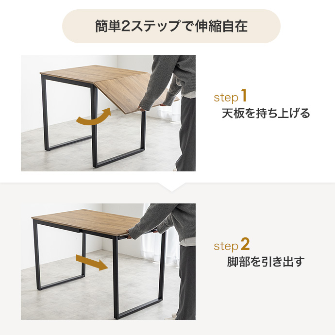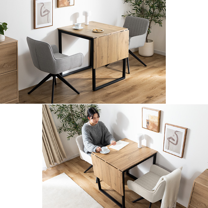 食事でのご使用だけでなく、ティータイムや趣味の時間、ご友人とののんびりタイムにも大活躍。また、天板を広げればPCや資料を置くのにも十分なスペースが確保できるため、作業用デスクとしてもおすすめです。生活の中のあらゆるシーンがこれ1台で確保いただけます。