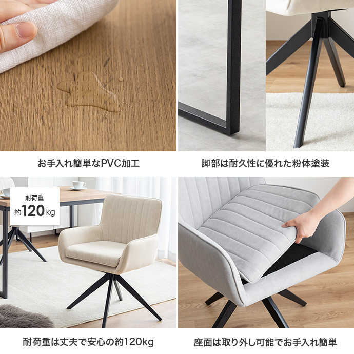 中材にはウレタンフォームを使用しており、沈み込みすぎず安定感のある座り心地。長時間座っても体に負担が掛かりにくく、食事やデスクワークなど幅広いシーンで快適にお過ごしいただけます。
