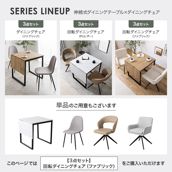 | 商品名 | 【3点セット】伸縮式ダイニングテーブル+回転チェア2脚(ファブリック) |