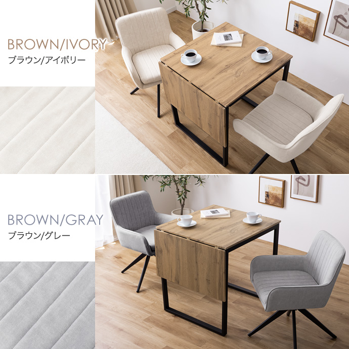 【3点セット】伸縮式ダイニングテーブル+回転チェア2脚(ファブリック)