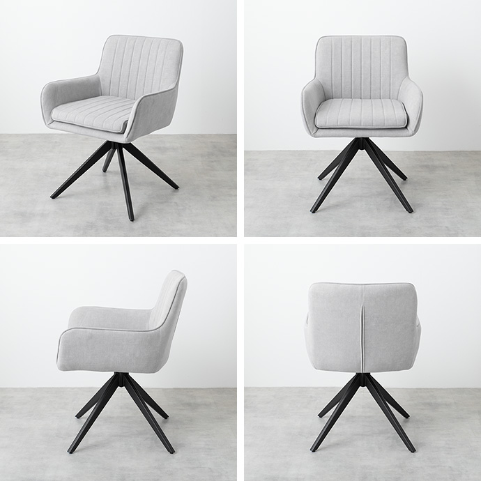 椅子を引かずに座りながら向きを変えられる回転式。立つ・座るの動作がスムーズに行えます。360度回転するため、近くのものに手を伸ばす際にもサッと向きを変えるだけで、立ち上がる必要がありません。