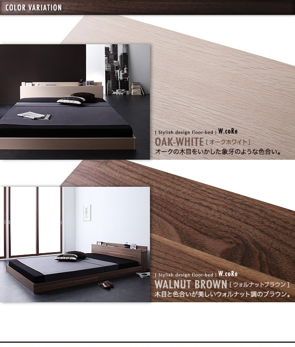 商品名 【ダブル】 W.coRe フロアベッド ロータイプ 棚付 コンセント付 幅145cm