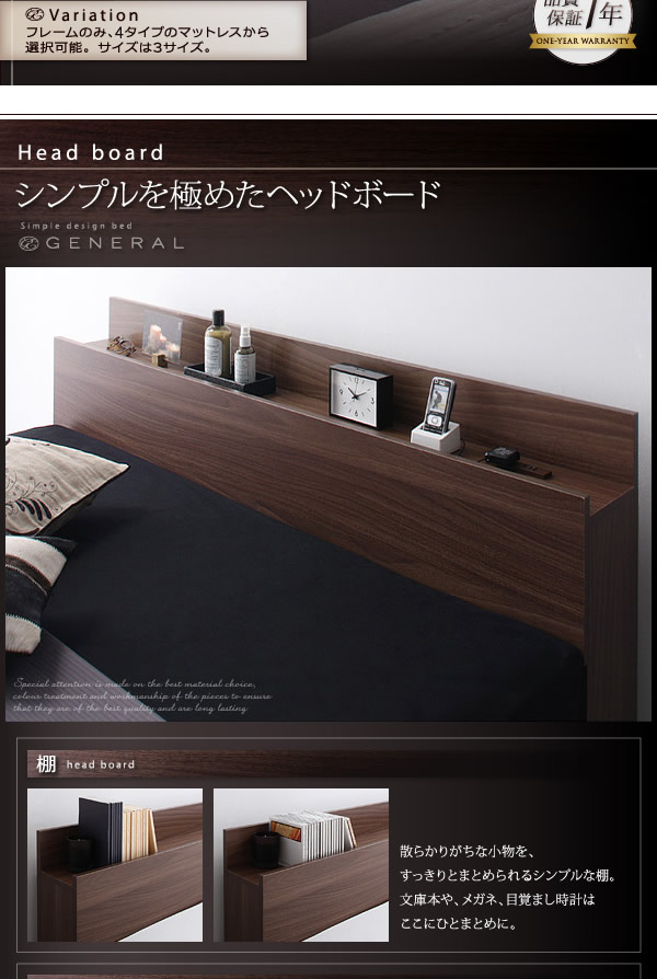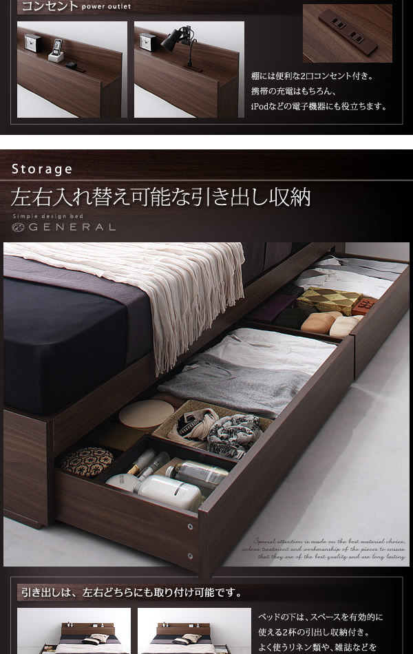 【シングル】 General 引出し・コンセント付きベッド 幅103cm