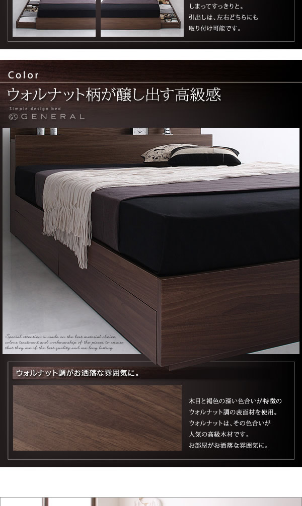 商品名 【シングル】 General 引出し・コンセント付きベッド 幅103cm