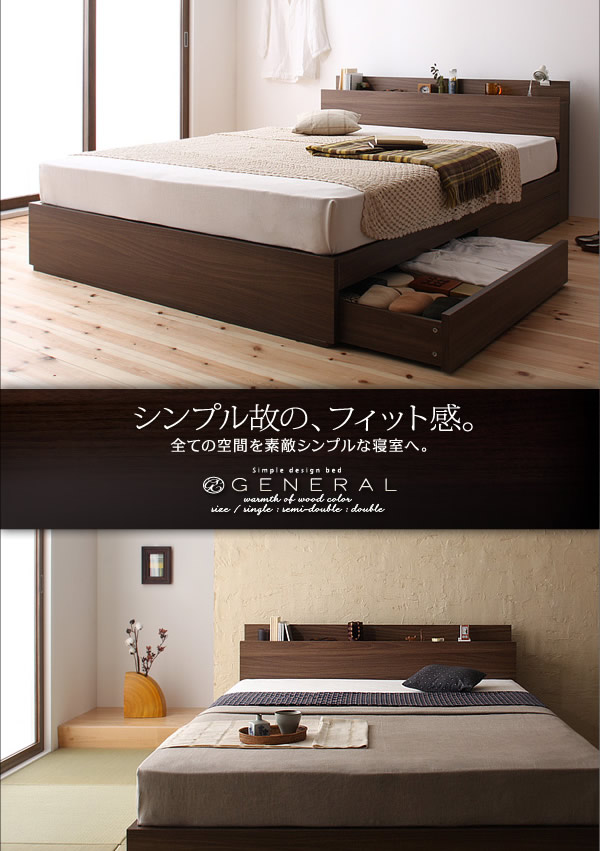• 【ダブル】 General 引出し・コンセント付きベッド 幅143cm