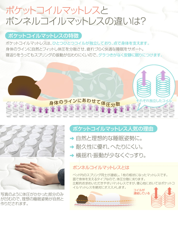 【オリジナルポケットコイルマットレス】幅:140cm×奥行:約195cm×高さ:17cm(コイル数:660)