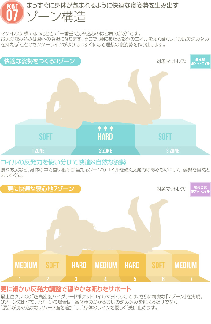 【高密度アドバンスポケットコイルマットレス】幅:140cm×奥行:約195cm×高さ:20cm(コイル数:875)