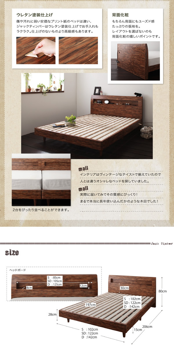 | 商品名 | 【シングル】 Jack timber すのこベッド 棚付 コンセント付 幅102cm |
