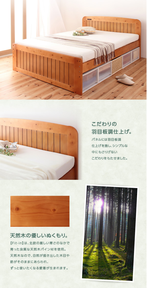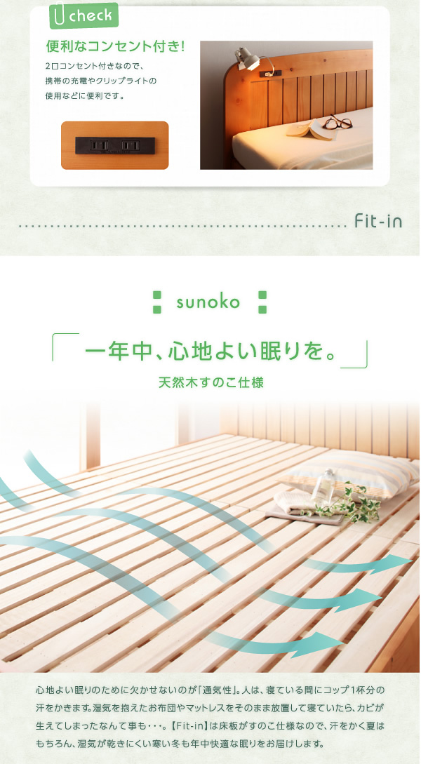【シングル】 Fit-in すのこベッド 高さ調節 コンセント付 天然木 幅102cm