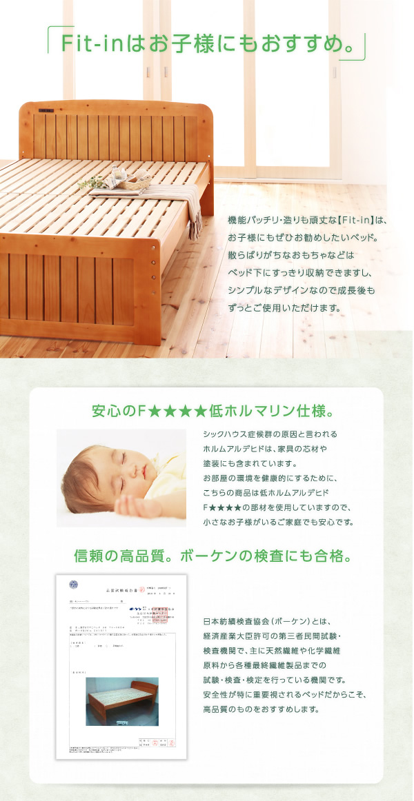 | 商品名 | 【シングル】 Fit-in すのこベッド 高さ調節 コンセント付 天然木 幅102cm |