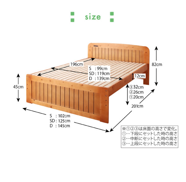 【シングル】3段階で高さが調節できるシンプルなデザインのすのこベッド