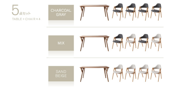 【5点セット】天然木の木の温もりを感じれる4人用ダイニングセット/色・タイプ:サンドベージュ&チャコールグレー&ミックス ダイニングテーブルセット ファミリー